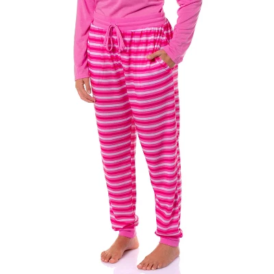 These Barbie Women’s Classic Retro Logo 2-Piece Sleepwear Set brings a nostalgic touch to your loungewear collection, blending comfort and style. This pajama set includes a pink long-sleeve top with a crewneck design and the classic Barbie logo on the front of the sleep shirt. The matching jogger pants feature an elastic waistband with an adjustable drawstring for a personalized fit, as well as two convenient side pockets. The pants showcase alternating pink and white stripes with solid pink ankle cuffs and waistband, giving a stylish look. Made from 100% soft polyester, this set is great for relaxing at home or sleeping comfortably through the night. It also makes a thoughtful gift for Barbie fans for birthdays or Christmas.