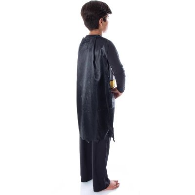 - COSTUME STYLE DESIGN – When you go looking for DC Comics pajama sets, we know you want them to be functional and something comfortable enough to wear in bed or anywhere around the house! That’s why these have just enough design to rep the character you love, but not so much they can’t be used! The raglan long sleeve shirt has a costume design on front with a Batman utility belt and Bat logo design and an approx—32″ long detachable cape with vel-cro.