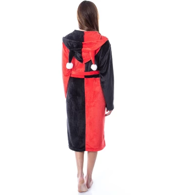 - HIGH-QUALITY PRINTED GRAPHICS – This Harley Quinn robe features her classic red and black costume look, and the hood has her signature jester horns from her iconic comic design.