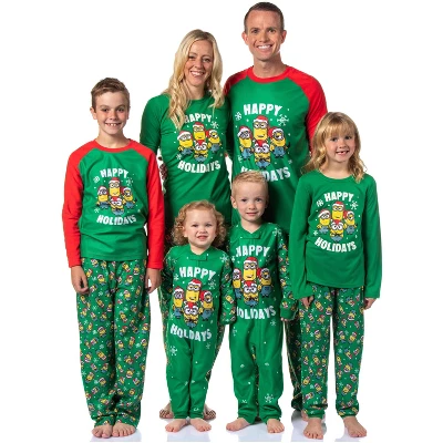 - DETAILED THEME – Stars of movies, cartoons, and the toys we love, Minions are taking the world by storm. Introduced in Despicable Me, now these fun-loving kings of comedy run their own adventures and storylines. The Minions pajama set is perfect for the Holidays! The set-top features the Minions with the words “Happy Holidays” above them. They are all wearing Santa hats and are surrounded by snowflakes. The bottoms feature a tossed print of the same Minions.
