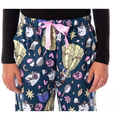 - FUN ALLOVER PATTERN – These Beauty and The Beast lounge pants feature a fun allover design of related art from the movie like the Rose, Chip, Mrs. Potts, and of course, Princess Belle!