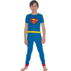 DC Comics Boys’ Superman Costume Raglan Shirt And Pants Pajama Set With Cape Classic Superman