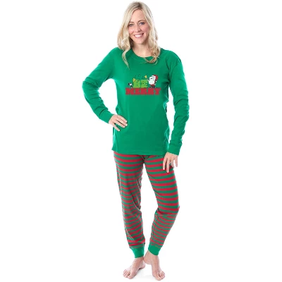 - CLASSIC DESIGN – This pajama set-top features the character Snoopy with his friend Woodstock in a Santa outfit with the words “Be Merry” under him. Perfect for the holidays and Christmas!