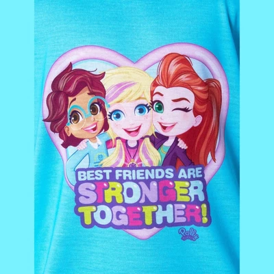 - HIGH-QUALITY PRINTED DESIGN – The Polly Pocket shirt top has a brilliant color design of Polly Pocket and her best friends Lila and Shani saying, ” Best Friends Are Stronger Together!” The shorts feature an allover design of multiple different looks at the best friends in heart designs.