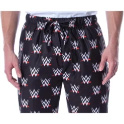 WWE Men’s Allover WWE Logo Pattern Adult Loungewear Sleep Pajama Pants Black