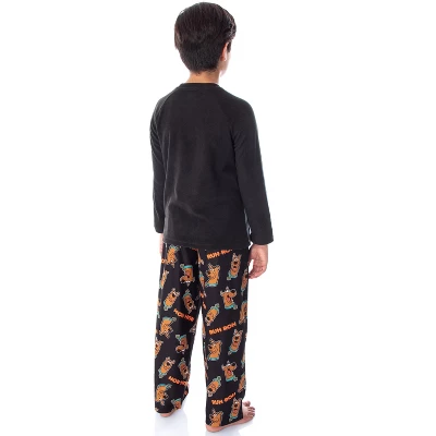 - VIVID COLOR, HIGH-QUALITY PRINTED DESIGNS – The long sleeve top features a large Scooby character face design with pattern behind him of one of his catchphrase sayings “Ruh-Roh!” The pajama pants feature a matching allover pattern