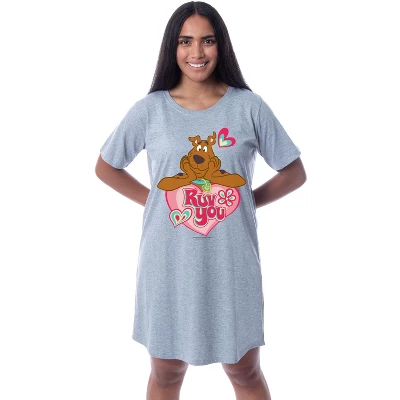 Scooby-Doo is one of the all-time classic cartoons! With fun characters like Shaggy, Velma, Daphne, Fred, and Scooby himself, Scooby-Doo has lasted through the generations and is as popular as ever! The gang is famous for hunting down and solving mysteries in their iconic Mystery Machine. This pajama features Scooby resting on a heart with the phrase “Ruv You” inside of it. The dress features a classic crewneck neck, as well as a knee-length style. The pajama is a soft 100% cotton fabric blend.