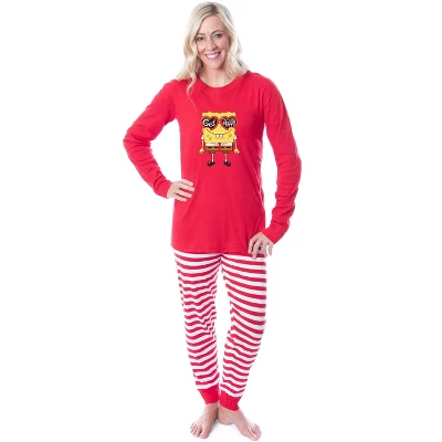 SpongeBob SquarePants is a popular cartoon series that aired on Nickelodeon. This sponge who lives in a pineapple under the sea is known for his passion for making Krabby Patties and his laughable personality. With characters like Patrick Star, Squidward, Sandy Cheeks, Plankton, Mr.Krabs, and Gary the Snail, this series is loved by fans everywhere! This SpongeBob SquarePants set-top features SpongeBob with a pair of sunglasses on and the phrase “Get Happy” in them. The pants are a fun striped design. The tight-fit pajamas are made of 100% Cotton for a snug, safe fit.