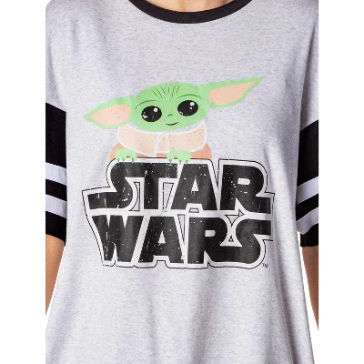 - CLASSIC DESIGN – This Star Wars pajama nightgown shirt features the character known as Grogu/The Child in a distressed design with the movie film title logo “Star Wars” under him. It’s perfect for curling up in and enjoying all your favorite Star Wars media!