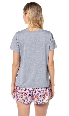Accidentally created in a lab by Professor Utonium, superpowered sisters Blossom, Bubbles and Buttercup regularly save Townsville from evildoers such as Mojo Jojo, the Gangreen Gang, and Him. Blossom is the self-proclaimed leader of the trio, Bubbles is the cute one and Buttercup is the toughest one. These superpowered sisters are featured on this cute pajama set! The pajama set-top features the classic “The Powerpuff Girls” TV series show logo, along with the three iconic Powerpuff Girls–Blossom, Bubbles, and Buttercup. The shorts feature a tossed print of the girls.