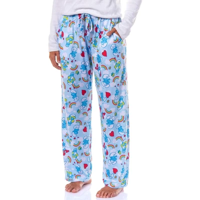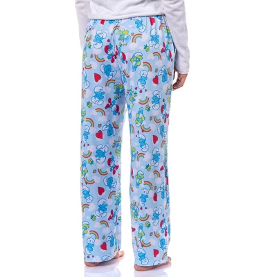 Float off to dreamland in these Smurfs pajama lounge pants, where whimsical adventures await. These fun and playful pants feature your favorite characters like Papa Smurf, Hefty Smurf, Clumsy, and Smurfette in a tossed all-over print, scattered among cheerful rainbows, fluffy clouds, adorable hearts, and colorful flowers. Crafted for ultimate comfort, the soft, breathable polyester fabric makes these lounge pants ideal for cozy nights and laid-back lounging while watching one of your favorite retro cartoon classics! These pants offer a charming, nostalgic feel, making bedtime more magical.