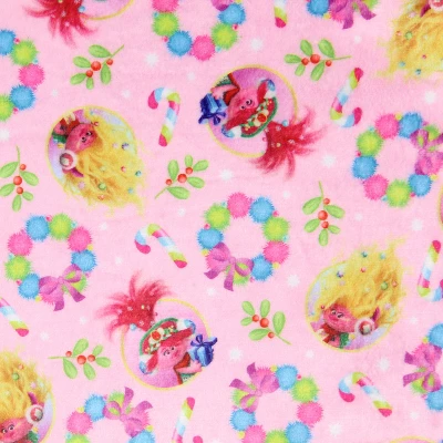 - HIGH-QUALITY PRINTED DESIGN ON MINKY PLUSH FABRIC: The centerpiece of this gown is the large, vibrant design on the front, showcasing the ever-joyful Poppy alongside her vivacious sister Viva. Pastel-themed wreaths and candy canes dance across the back and sleeves, offering a festive touch that’s both sweet and stylish.